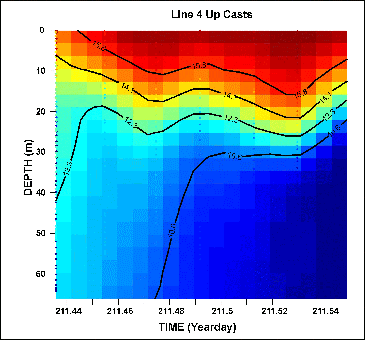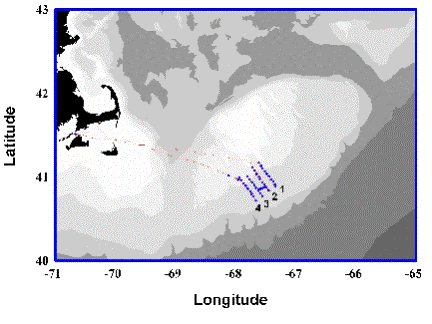 In order to re-examine an ocean phenomenon of interest and to demonstrate the usefulness of fishing vessels as research platforms, a survey of the tidal mixing front on the southern flank of Georges Bank was carried out during July, 2001 by the F/V Glenna & Jacob (Figure 4). Underway sea surface temperature (SST) was measured and vertical temperature profiles were